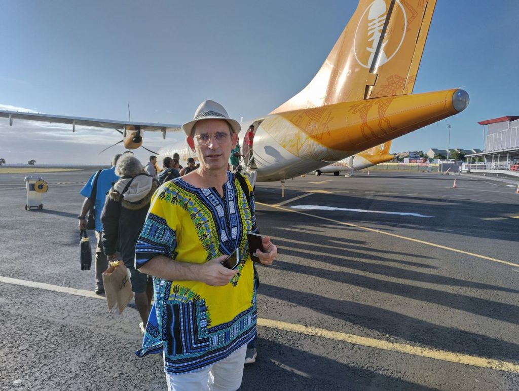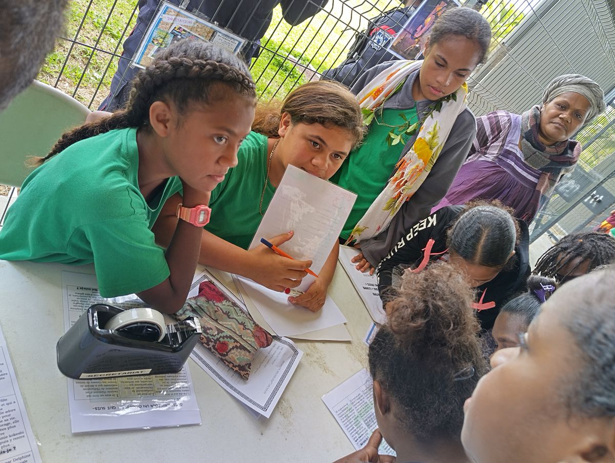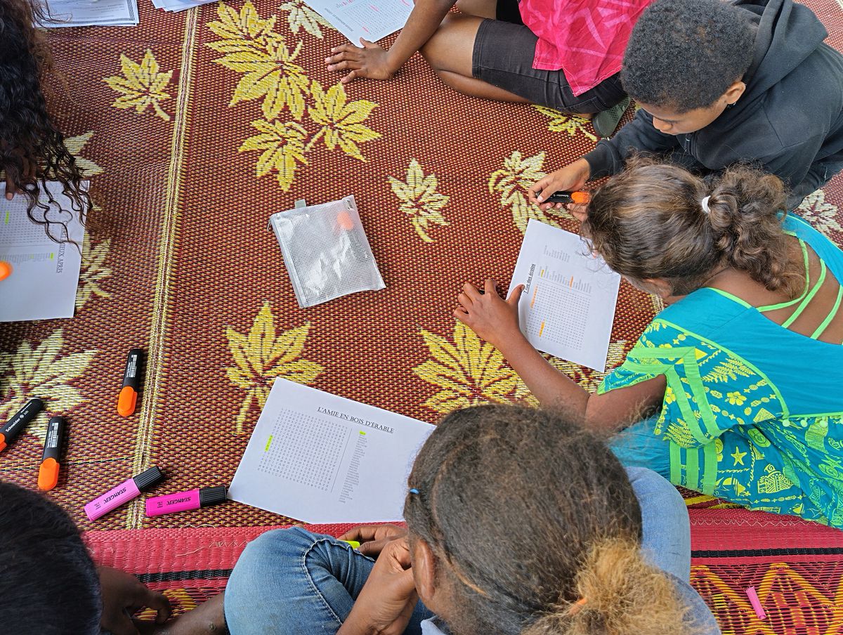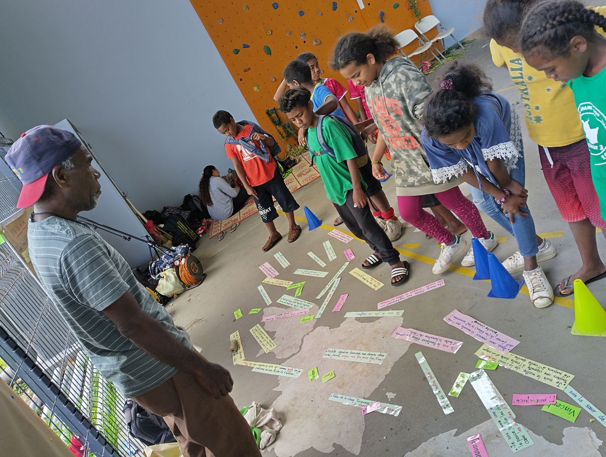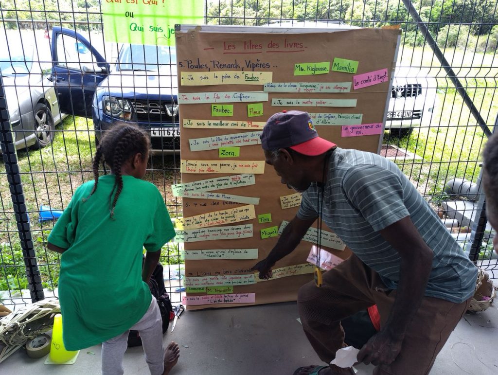 Ce vendredi matin, Paul avait donc rendez-vous avec les classes du collège public de Tadine, du collège privé de Taremen, la totalité des élèves de CM2 des quatre secteurs de l’île (enseignement public et privé)… Pas moins de 150 élèves s’étaient réunis sous la grande halle municipale de la tribu de Wabao.