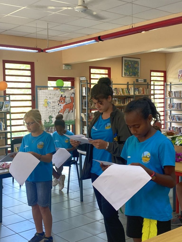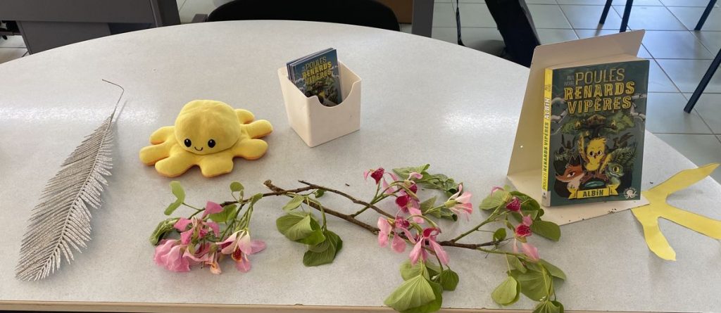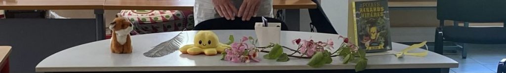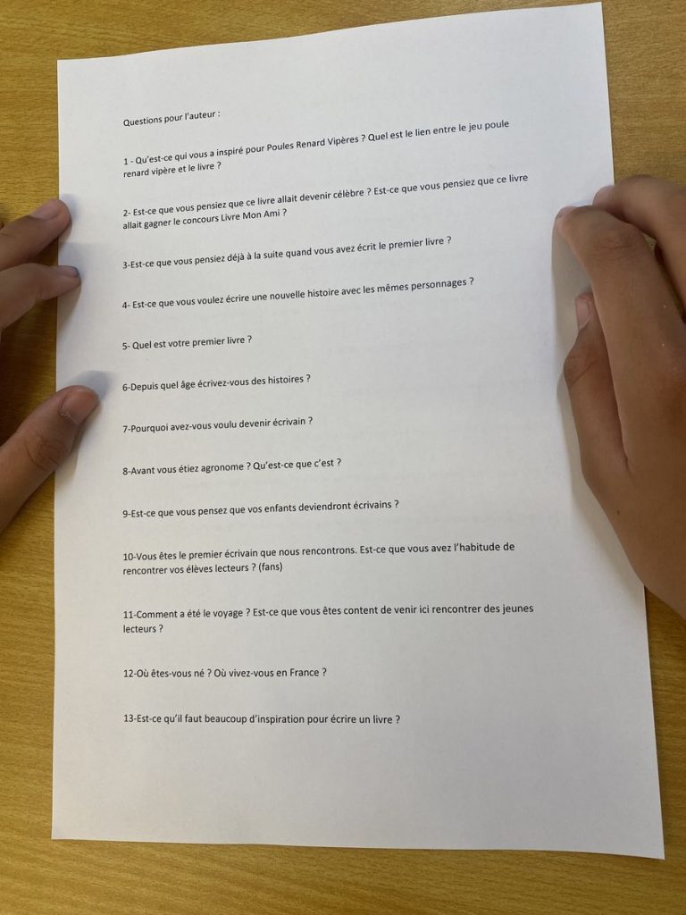 Madame Julie Sausseaux est présente. Professeure d’art plastique, elle anime un atelier de lecture à voix haute dans le temps de midi. Les élèves ont également créé en arts plastiques deux superbes affiches dont l’une est offerte à Paul. Un questionnaire important de 24 questions permet aux enfants de s’informer plus que complètement sur l’auteur.