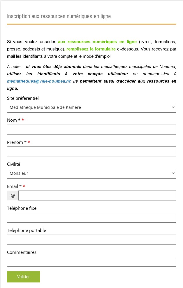 - Rendez-vous sur le portail : https://webmediatheques.noumea.nc