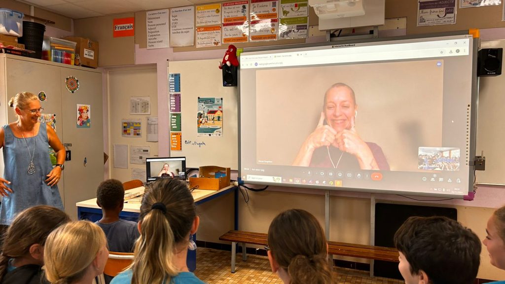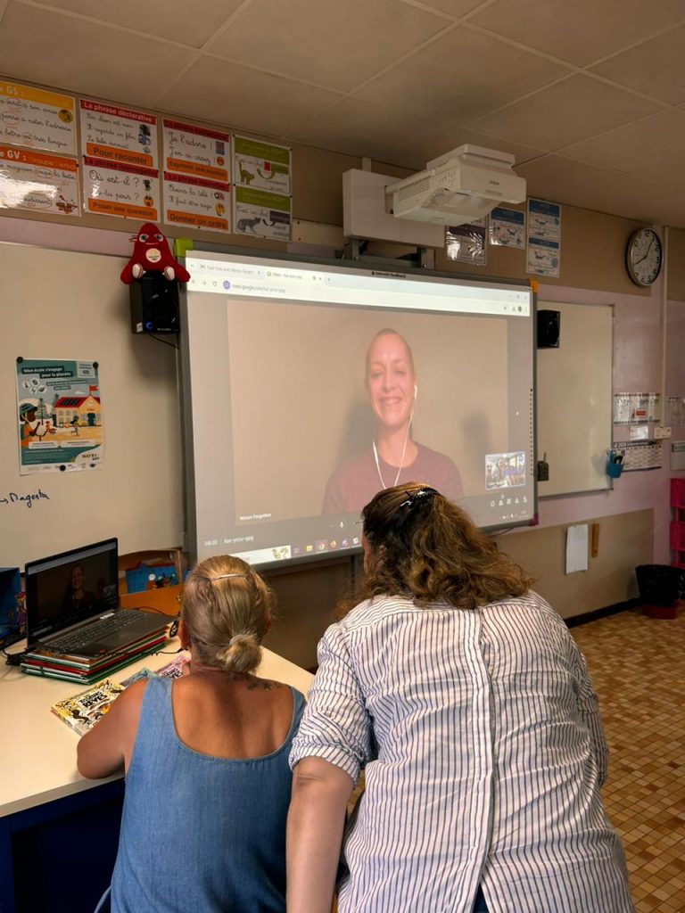 Une première visioconférence Livre mon ami de l’autrice lauréate du prix de littérature 2024 Manon Fargetton à l’école « Candide Koch » avec les classes de Maîtresse Claire et Maîtresse Sophie : des élèves curieux, intéressés, très motivés et Manon disponible, attentive et bienveillante répondant avec plaisir aux questions des enfants qui ont pu découvrir un peu de son univers de rêve !