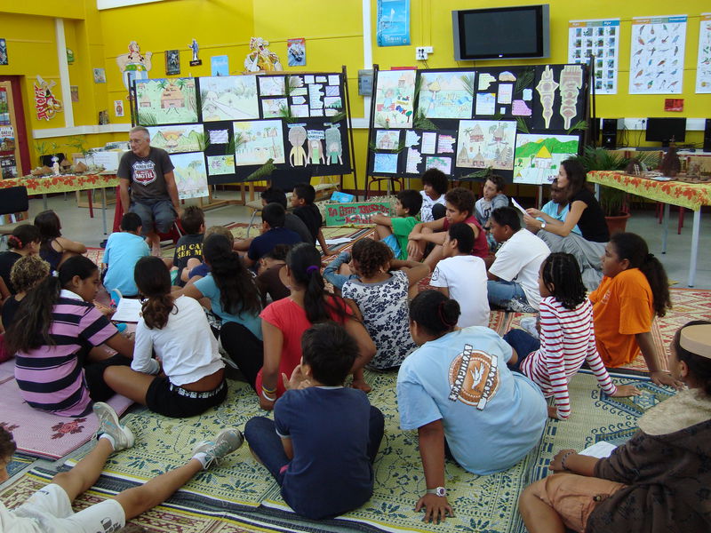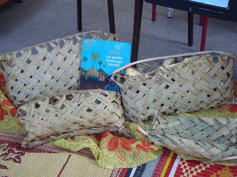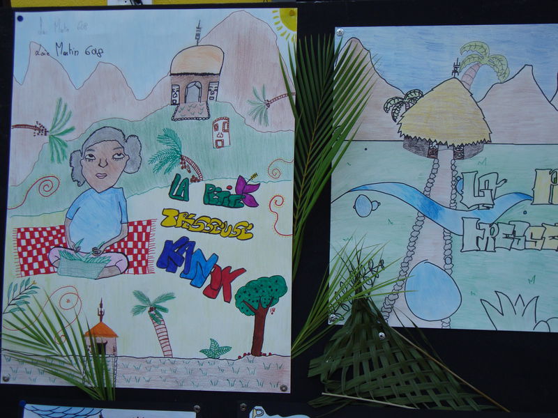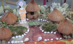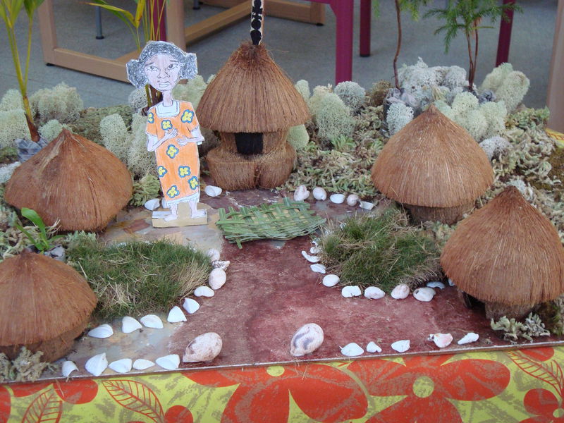 Deux villages kanak reconstitués à partir de paille, de coquillages et de feuilles de cocotier tressées.