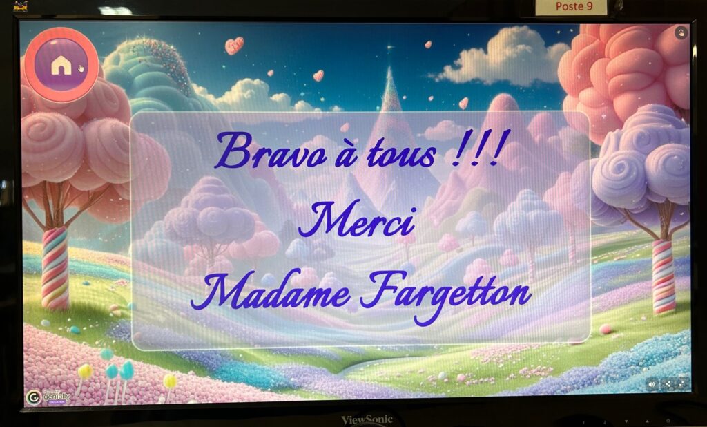 Un moment de jeu a suivi : deux équipes se sont affrontées pour un « Questions de p’tits champions » avec une quarantaine de questions sur les quatre livres de la série. L’équipe de Manon a tout naturellement gagné ! Une jolie fleur de frangipanier lui a été offerte.