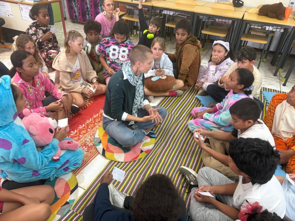 Très vite tout le monde s’est installé sur la natte et Manon a répondu à tout un tas de questions :