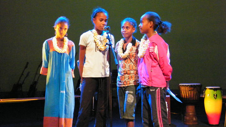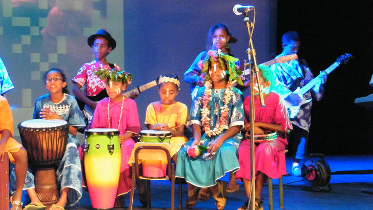 Une vidéo envoyée par Audren fut projetée, tandis que, comme de coutume, de nombreux enfants ou groupes d’enfants étaient présents pour rencontrer Yannick et célébrer autant La petite Tresseuse kanak que l’opération Livre, mon ami.