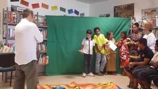 - Accueil par la coutume : toutes les ethnies sont représentées, tous souhaitent la bienvenue à l’auteur dans leur langue maternelle
