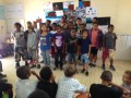 Accueil et interview par les élèves de la classe de CM2 de Loric Toukio, parenthèse poétique avec les CM1/CE2 de l’école puis enchantement à la maternelle avec les élèves de maîtresse Mauricette qui ont présenté à l’auteure un album par le biais du tableau blanc interactif.