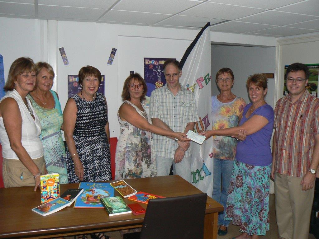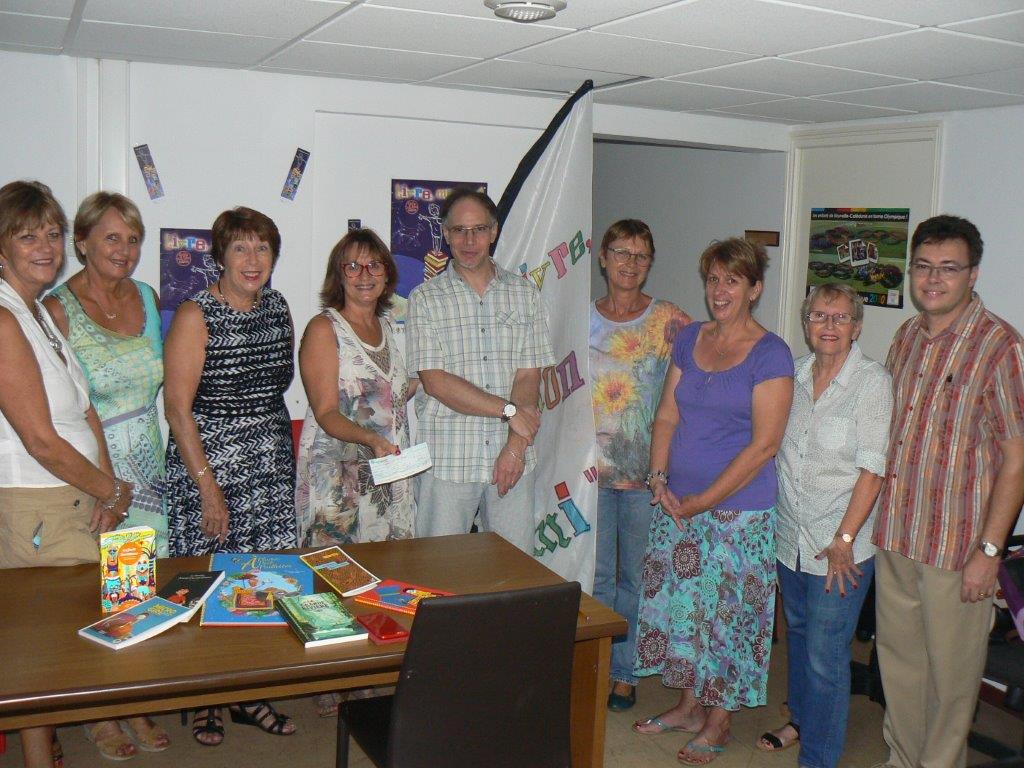 Sensibles à la qualité de notre opération, à nos objectifs de lutte contre l’illettrisme et à notre souci d’apporter les livres au plus près de chaque élève calédonien, trois représentants du ROTARY, Mireille MICHEL, Dominique MAY-VEYRET et Thomas HICKSON nous ont remis un chèque de 180 000 XPF .