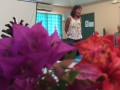 A La Foa une salle superbement décorée de fleurs et de feuilles et agréablement rafraîchie attendait l’auteure.