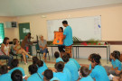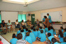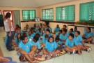 A Bourail, c’est une sacrée équipe de super menteurs, des petits Pinnochio a chapeau et longs nez qui a accueilli Cécile à l’entrée du CDI du collège ! Un travail de liaison CM2 sixième très réussi ! La mise en scène et les différents tableaux ont ravi les spectateurs avec la reconstitution complète d’une salle de classe de l’école d’Aristide au si célèbre nom de Jacques Prévert ! Des déclamations, des chœurs de lectures, des lectures en échos d’extraits de super menteur ont nourri richement ce moment en impressions fortes pour Cécile et tous les spectateurs, le tout dans un décor peint très soigné ! Même Brutus le perroquet était là ainsi que le Bonus de la Taupe. Super équipe de super acteurs pour un super menteur revisité avec brio !