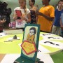 Dans le premier temps trois classes reçoivent Cécile sous une pluie battante. Il lui est offert un recueil de dessins sur le thème du mensonge puis s’ensuit une mise en scène présentant quelques devinettes pour un jeu sur le livre « mensonge ou vérité « . Cécile rebondit pour jouer Aussi avec eux au jeu de la vérité sur sa propre vie : » dans mon jardin, j’ai un bananier « … vrai ou faux ? Eh bien c’est vrai !