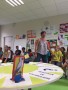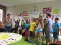 Lancers de dés, questions, cases bonus, chance, vocabulaire, malchance etc. se succèdent équipe par équipe pour un moment actif et ludique avec une ambiance très animée et sportive entre les équipes bleue, jaune et rose !