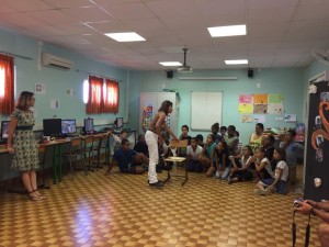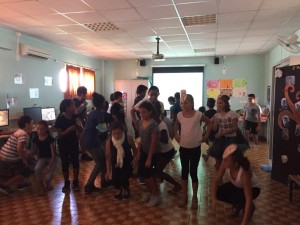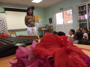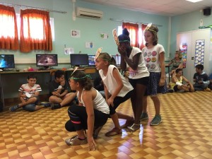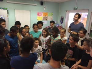 Cette dernière rencontre avec des élèves calédoniens a beaucoup de mal à s’achever et Nathalie présente un exemple d’activité dansée à Cécile « le jeu du mikado » puis à son tour Cécile présente elle aussi un jeu théâtral appelé « l’ambiance sonore ».