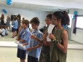 Les élèves de 6ème, remplis d’énergie et très enthousiastes, entraînent Évelyne dans le dédale du collège à travers un itinéraire parsemé de belles surprises, lui faisant découvrir par la même occasion la grande cour, la belle salle de musique, le CDI, et la magnifique salle de danse où deux élèves exécutent devant Évelyne une chorégraphie qu’elles ont créée.