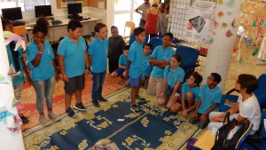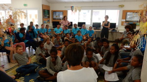 Les deux classes-hôtes ont ensuite offert à Sophie la récitation de poèmes ayant pour thème le vivre ensemble (classe de CM2) ou des haïkus autour des écrans et réseaux (élèves de sixième). Les enfants avaient même mis en scène ces déclamations.