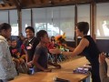 Après un moment très émouvant et totalement mystique de coutume sous la Grande Case de la chefferie de Druelu, nous avons partagé un bougna sublime sous le préau de la plage de QASANYI : enseignantes, directrices, conseillère pédagogique, animateur, animatrices, accompagnatrices ont échangé avec Sophie autour des pistes d’écriture pour les élèves, se sont essayés à de petits ateliers d’écriture, le tout face à l’océan, à la transparence du lagon, dans un environnement de rêve !