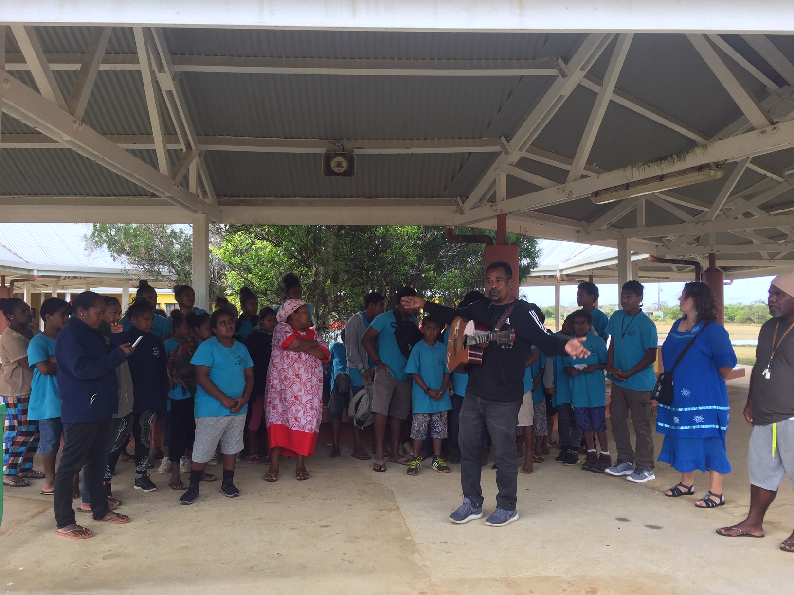 Jimmy GUANERE, documentaliste à Tadine a ensuite merveilleusement reçu, chez lui, notre invité et les deux équipes pédagogiques, autour d’un bougna traditionnel, dans une ambiance chaleureuse et familiale. L’après-midi, Jimmy a fait découvrir quelques superbes coins de son île à Antoine. Une journée parfaite pour ce premier rendez-vous avec les élèves calédoniens.
