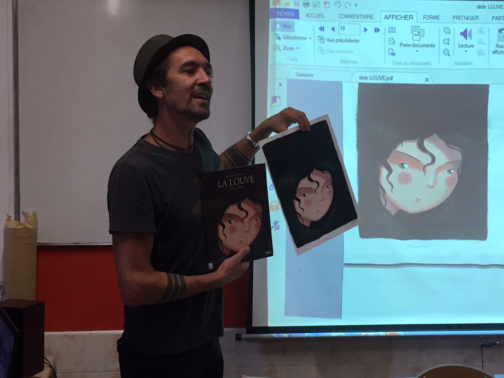 Après un accueil traditionnel suivi d’un chant d’amour universel « Thu seseko », les questions et réponses autour du métier d’illustrateur fusent.