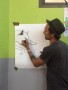 Il présente aux élèves de 6 ème et de SEGPA les différentes étapes de l’album depuis la réception du texte jusqu’à l’impression. Il explique réaliser d’abord « le chemin de fer du livre », l’ensemble de toutes les images en petit format.