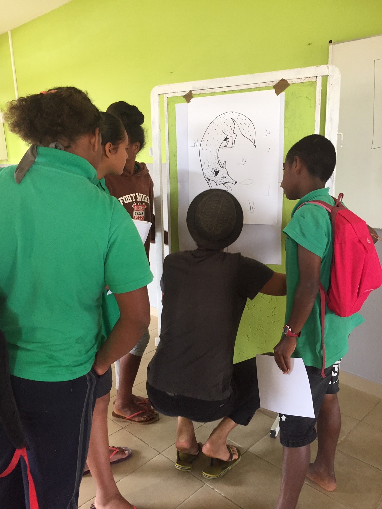 Les élèves ont ensuite lu à haute voix deux contes écrits à la manière de La Louve et contextualisés à leur île.
