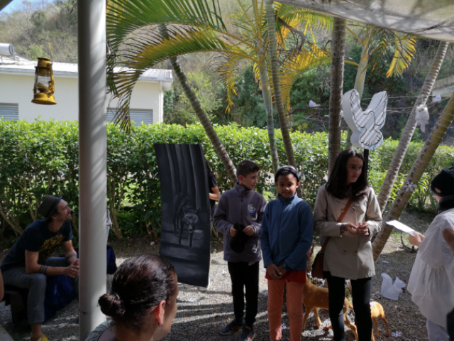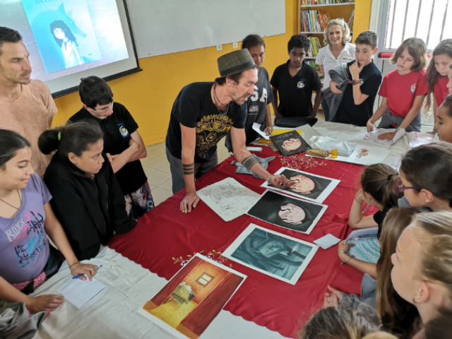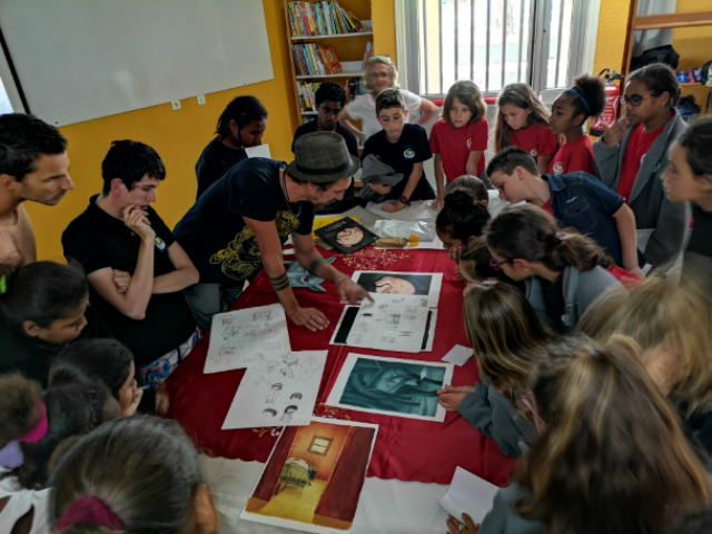 Leurs camarades du collège de Wani les avaient rejoint pour assister et échanger avec Antoine qui a dû les émerveiller grâce à ses dessins originaux et les éclairer sur le métier d’illustrateur.