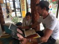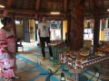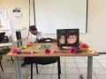 Un petit déjeuner généreux nous attendait à LHONA. Nous avons été reçus par Hélène, responsable de la médiathèque et par Sonia la bibliothécaire. Un buffet nous attendait sous le superbe faré central, aux poteaux entièrement sculptés par les artistes de l’île, à l’occasion des 20 ans de la médiathèque.