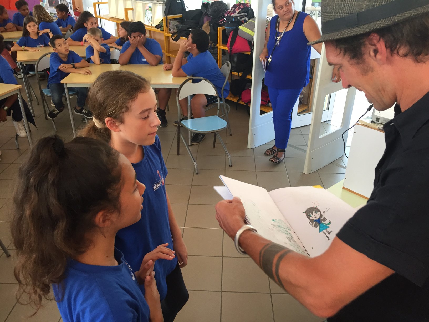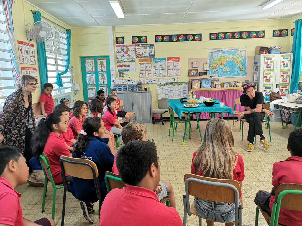 Sous la houlette d’Estelle Fourcassies, la documentaliste, des élèves de SEGPA et de sixième, accompagnés de leurs enseignants ont proposé un chapeau à questions qui a donné lieu à un moment d’échange très animé. Les enfants ont pu apprendre qu’Antoine est passionné de dessin depuis l’enfance, qu’il préférait les illustrations aux textes.
