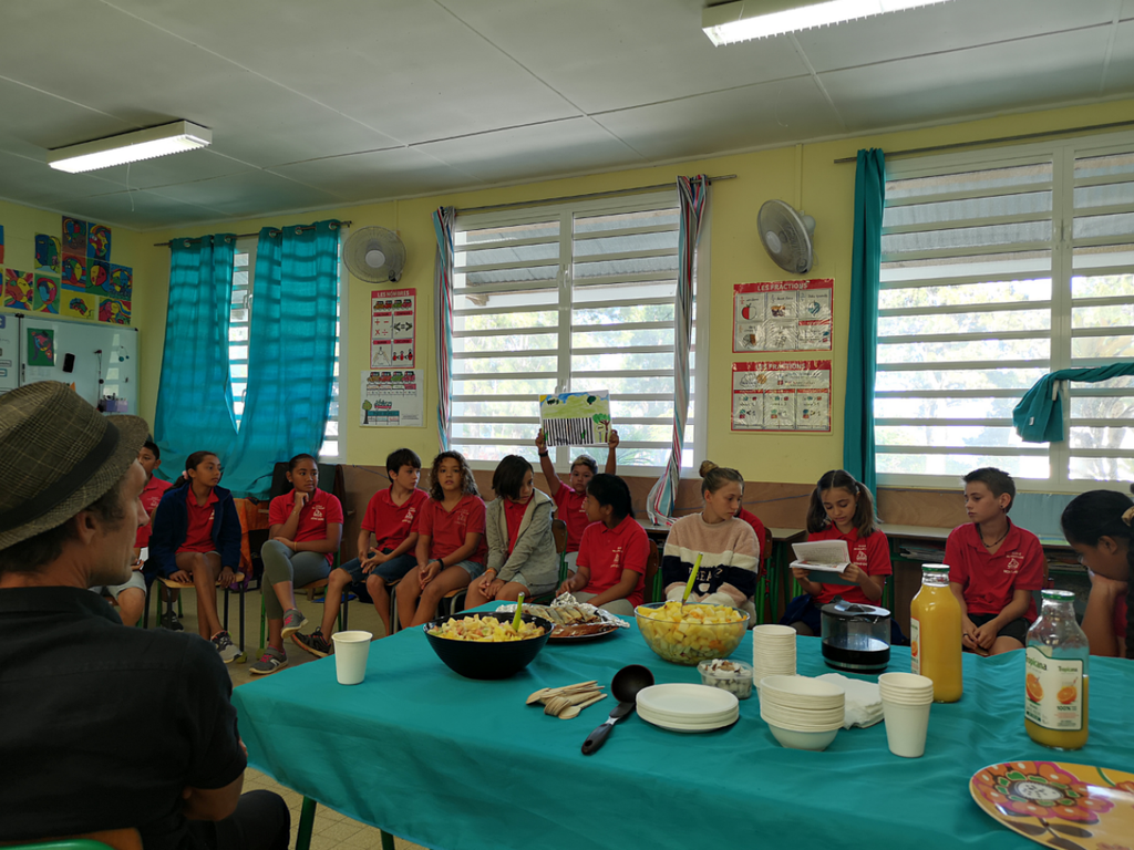 Dans le CM2 de Nathalie BONIFACE, certains élèves sont déjà là, une superbe salade de fruits a été préparée par les enfants ainsi que des crêpes au chocolat !