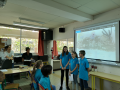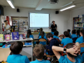 Une saynète d’un extrait de l’album a ensuite régalé notre illustre illustrateur. Deux élèves ont dit une magnifique poésie. Antoine s’est prêté à un jeu numérique de remise en ordre des illustrations de son album.