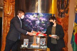 La MNC a en effet offert à Estelle de nombreux présents qui auront fait d’elle, à sa venue dans le Pacifique, une spécialiste de la littérature de notre Pays : porte-folio, albums et roman assortis d’une mallette et d’entrées au Museum d’Histoire Naturelle, en attendant de pouvoir visiter également le musée du Quai Branly à l’initiative de la représentation calédonienne à Paris, dont l’exposition Roger Boulay. Voir à ce propos ce lien.