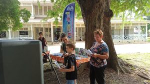 L’auteure de l’un ce ces romans de légende (Okai et Choda, livre lauréat en 2017), Evelyne André-Guidici, nous fit justement l’amitié de venir parler de son aventure de romancière, de parent d’élève et d’enseignante en rendant un hommage appuyé à l’opération Livre Mon Ami.