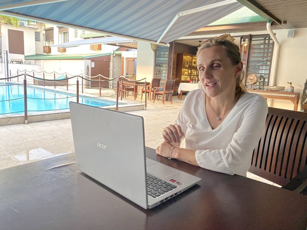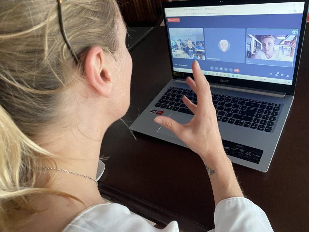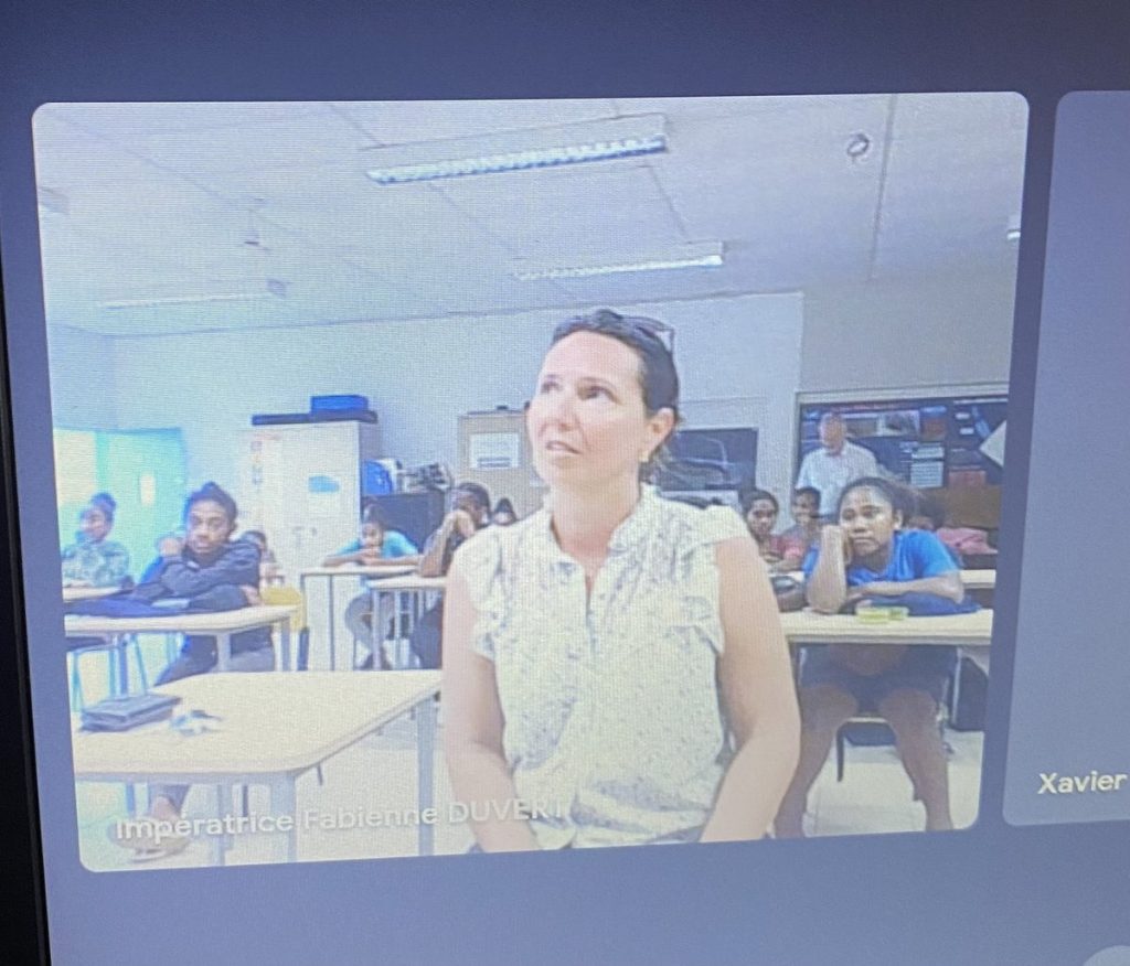 Une visioconférence a ensuite été organisée en soirée depuis Koné avec les élèves internes du collège Paï Kaleone : de nombreuses questions des élèves et de la documentaliste ont permis de mieux connaître le parcours du livre et le travail de l’autrice. Ce moment s’est terminé par un chant de Hienghène.