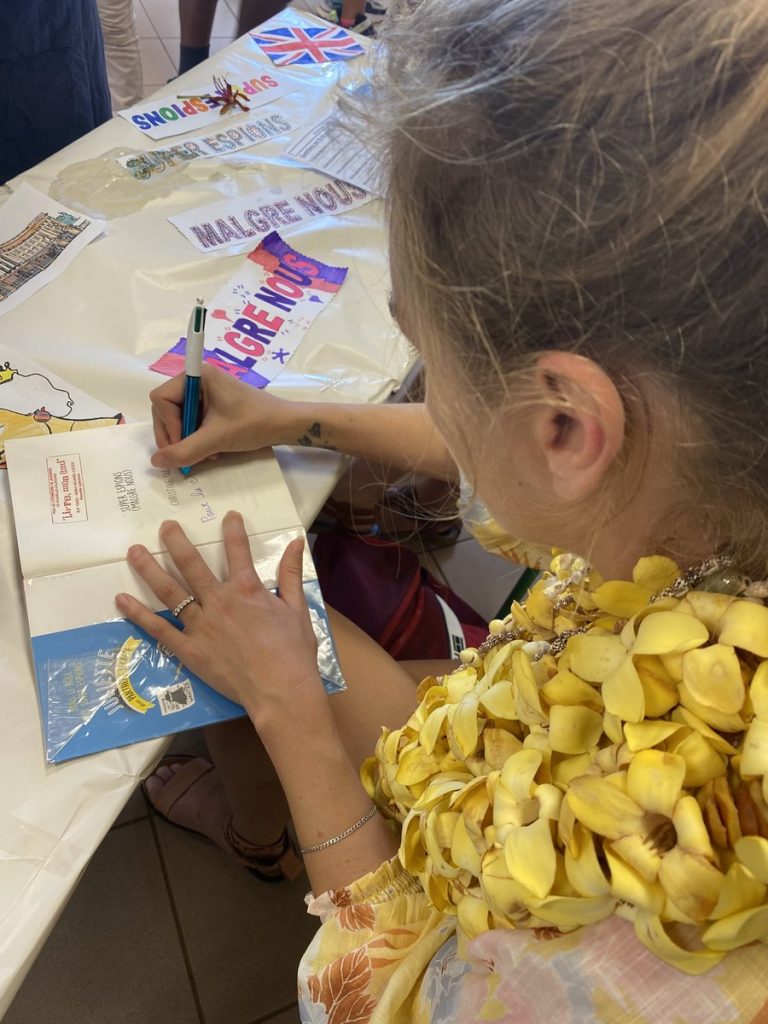 Après avoir souhaité un joyeux anniversaire à Ethan, 11 ans ce 27 octobre (avec en cadeau un livre dédicacé de « super espions- malgré nous »), un goûter tout aussi royal a été servi à l’ensemble des élèves et des visiteuses.