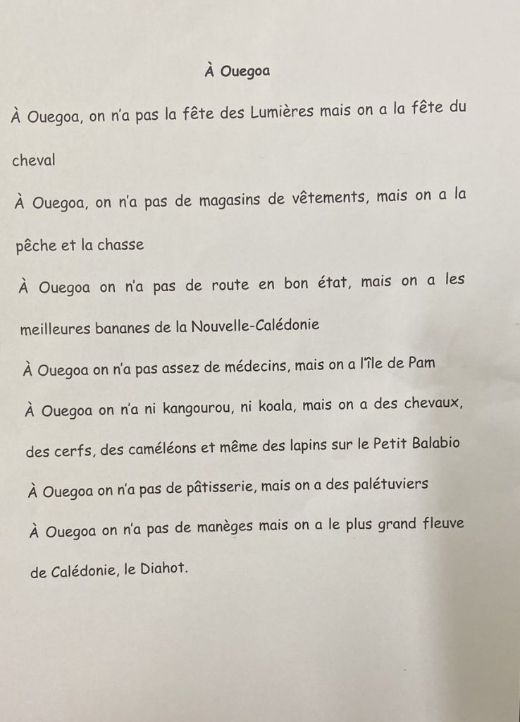 Les élèves de Ouégoa ont accueilli Christine avec quelques mots dans toutes les langues parlées au collège.