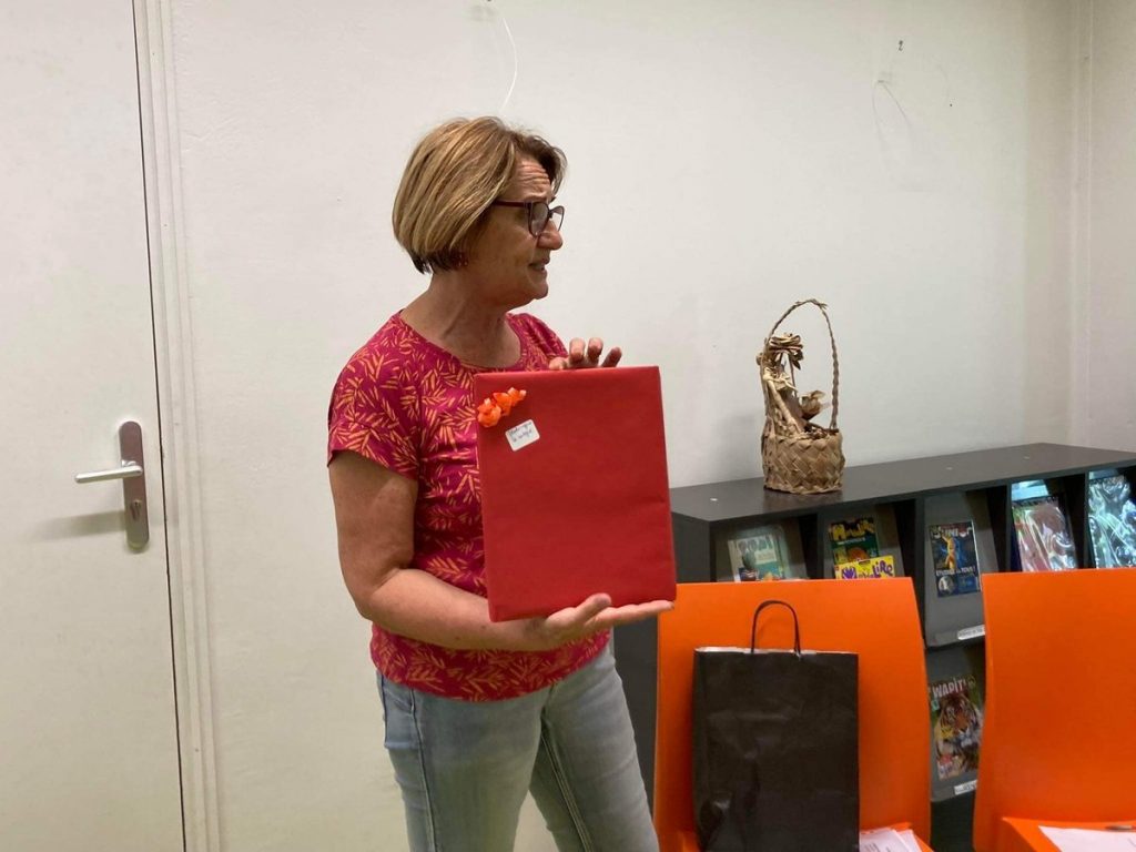 Marie-Laure a clôturé les échanges par un geste de remerciement et un message d’encouragement à continuer à lire même au fin fond de la brousse calédonienne.