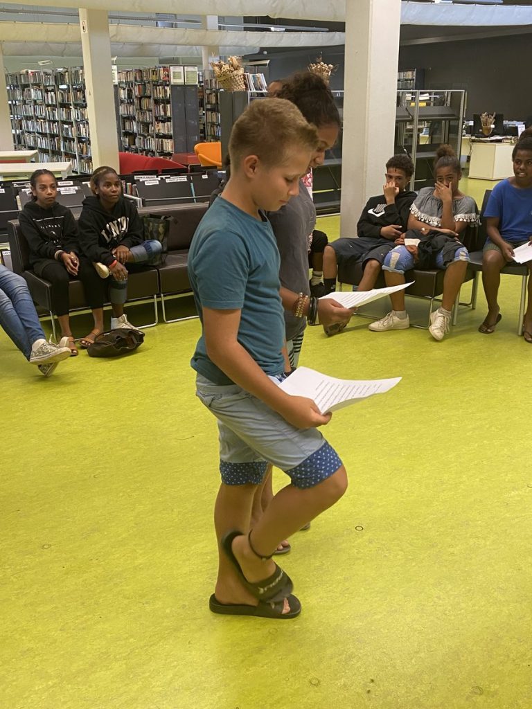 Il y eut deux petits slams très touchants pour présenter la vie de Ouegoa et une pièce de théâtre écrite intégralement par les élèves (à partir de la farce du cuvier, XIII ème siècle ) qu’ils ont su adapter au style local.