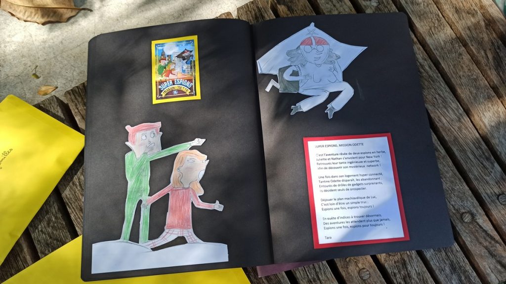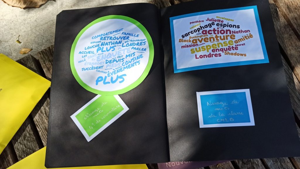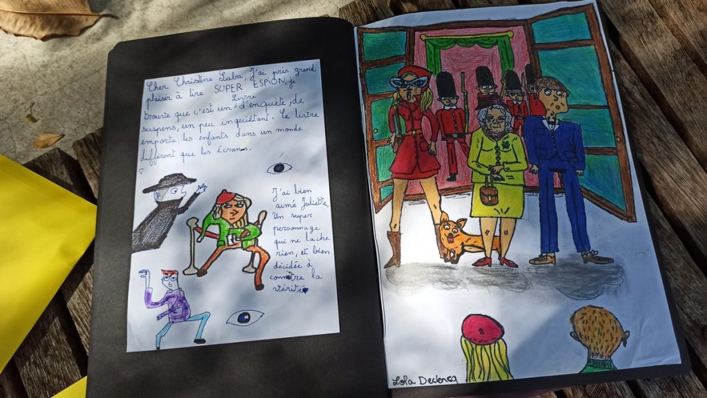 L’autrice a également reçu un nombre conséquent de productions de la part des élèves, consignées dans des enveloppes sous forme de cartes postales, ou encore un carnet de lecture réalisé par l’ensemble des enfants.