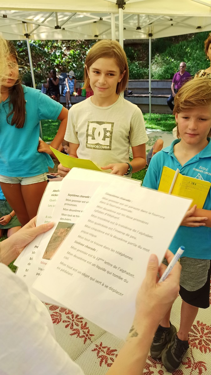Christine s’est sortie avec tous les honneurs des quantités de charades, rébus, devinettes et autres jeux concoctés par les enfants ! Les ateliers tournants étaient animés par des élèves prolixes (sauf pour souffler les réponses 😀 ) et motivés.
