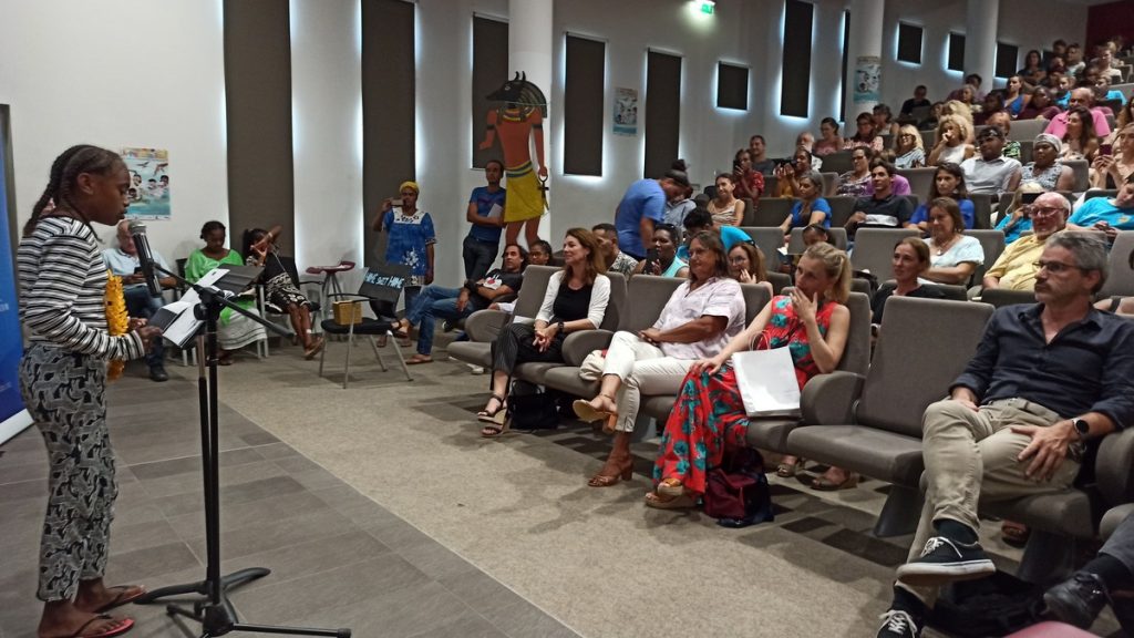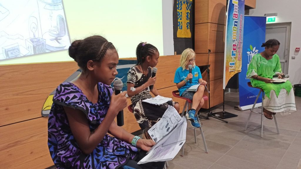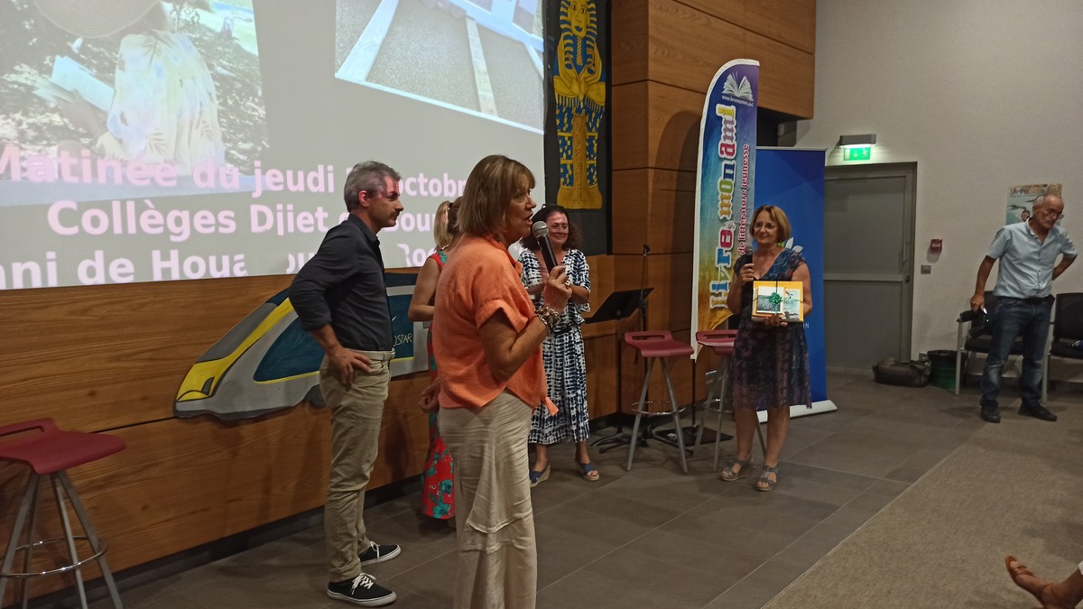 Notre hôte la Province Sud, en la personne de Léa Tripodi, nous a accueillis cette année encore dans son auditorium avant de céder la place à Isabelle Champmoreau, Vice Prédidente du Gouvernement et en charge de l’enseignement, qui a rendu, en poésie, hommage à Livre Mon Ami. Romain Capron, Directeur de l’Enseignement de la Nouvelle-Calédonie, a réaffirmé l’implication institutionnelle dans l’opération : le prix littéraire ainsi que le concours de lecture à vois haute sont dorénavant intégrés aux actions pédagogiques au premier et au second degré.