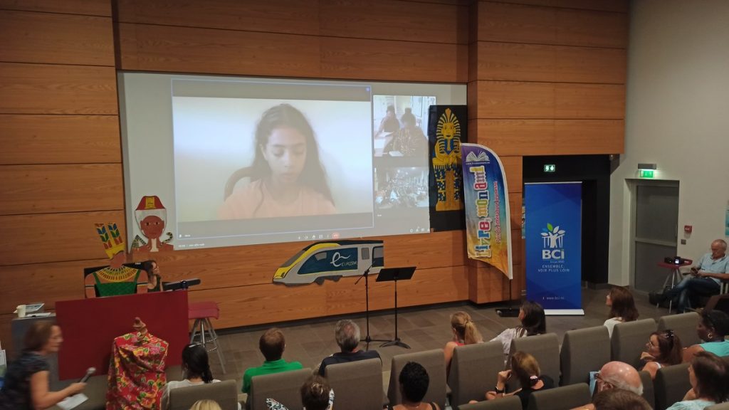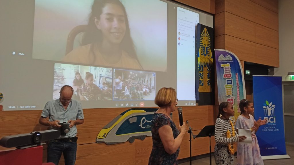 La nouveauté, cette année, pour le retour des récompenses de la lecture à voix haute, est l’intervention de nos lauréats et de nos prix d’encouragement par visioconférence. C’est ainsi qu’on a pu voir et entendre, lors de ces deux moments, deux lectrices des collèges de Hienghène et de Normandie par écrans interposés.