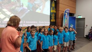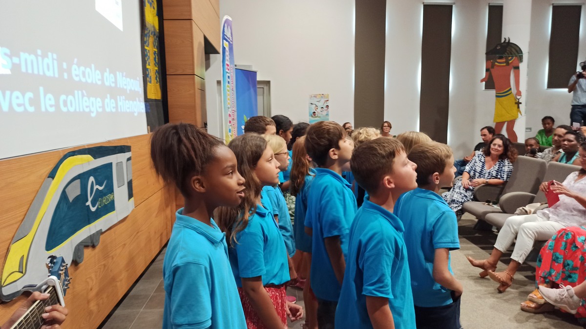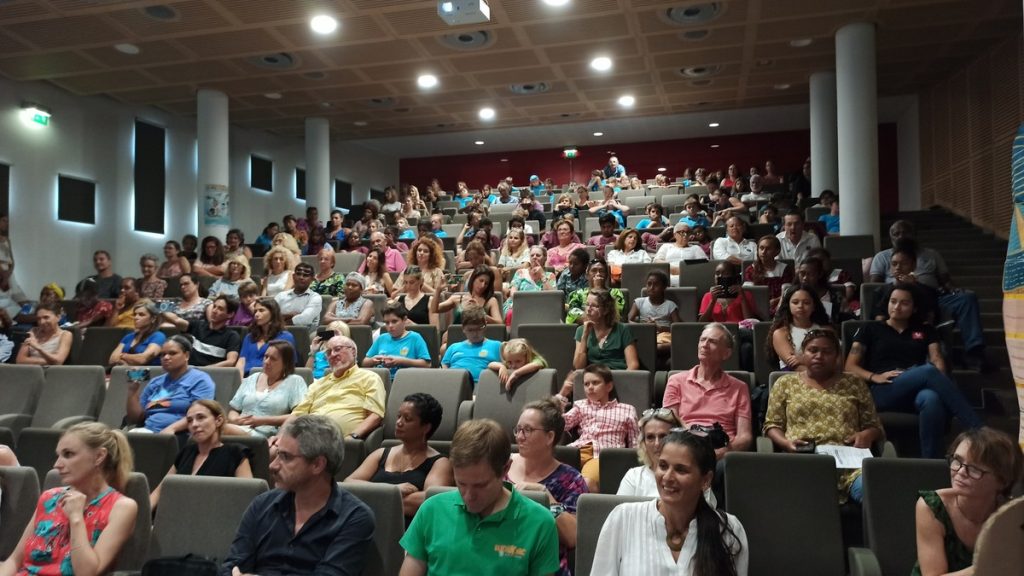 La cérémonie s’est clôturée en chanson, avec les élèves de CE2 de l’école Yvonne Dupont, puis les enfants se sont dirigés vers le traditionnel goûter offert par notre partenaire la BCI servi dans le grand hall de la Province Sud.