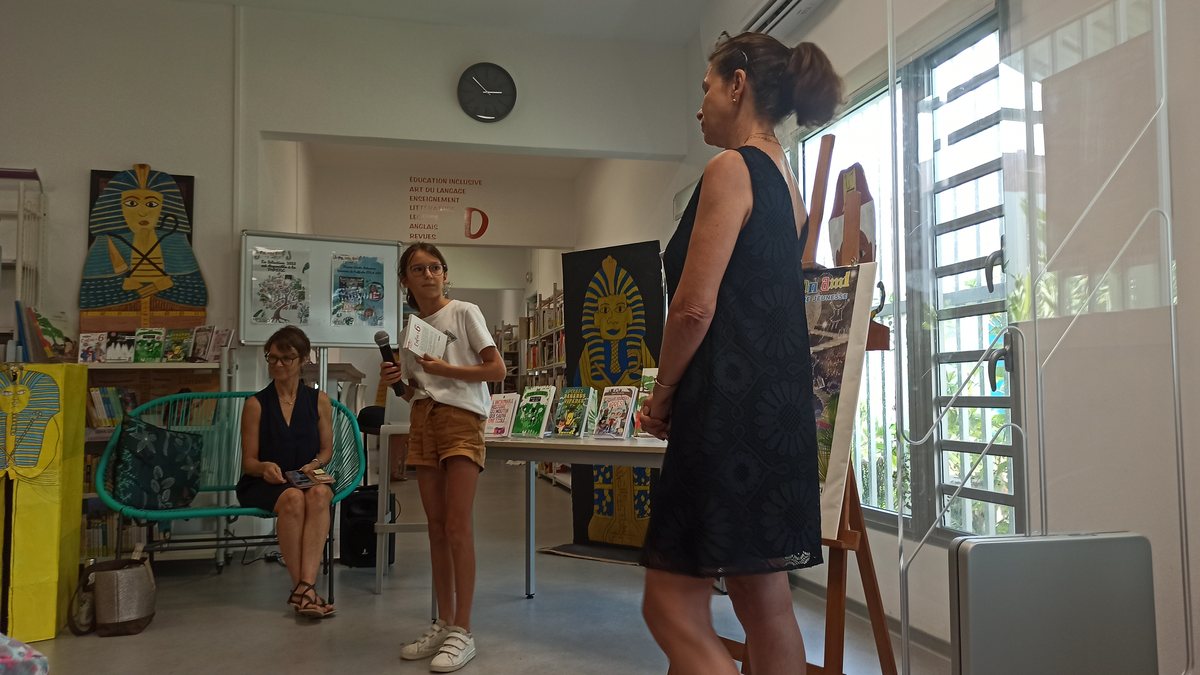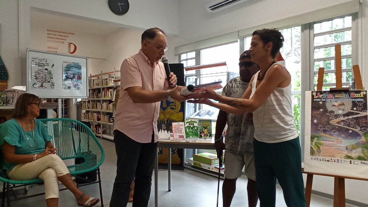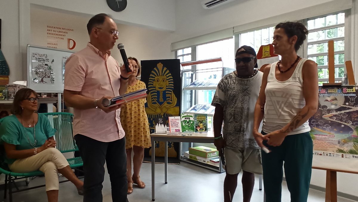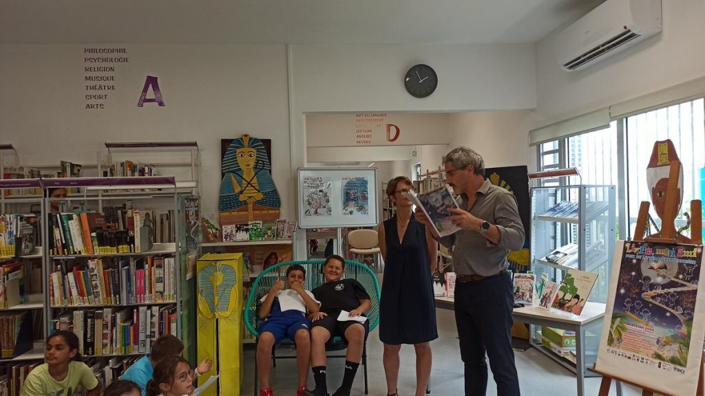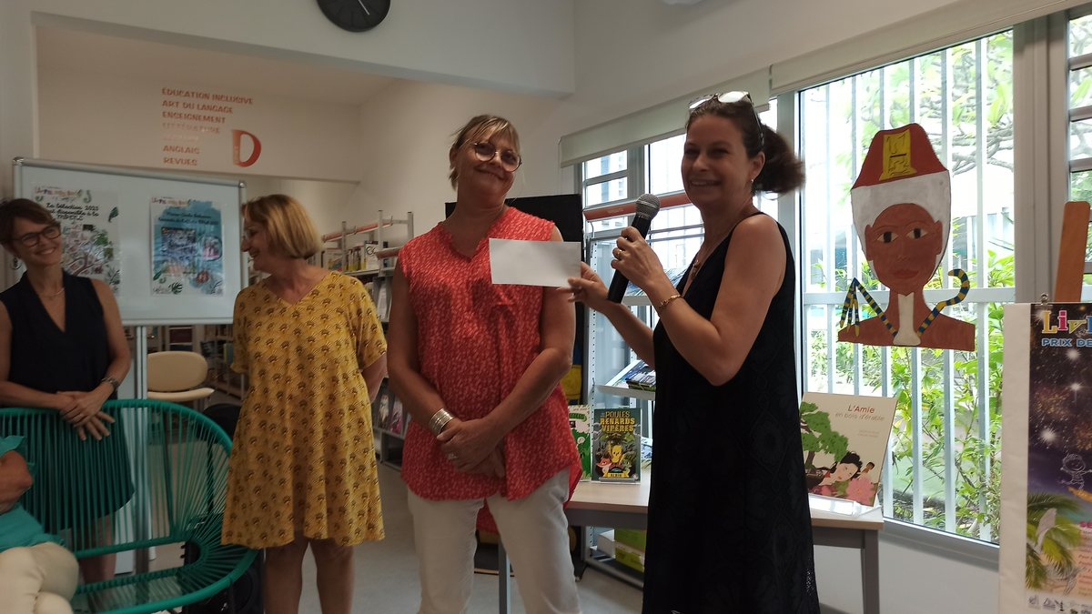 L’association remercie chaleureusement à la fois l’IFMNC et les documentalistes de la MPENC pour avoir reçu officiels, élèves, enseignants et tous les amis de la littérature de jeunesse présents. M. Romain Capron, Directeur de l’Enseignement de Nouvelle-Calédonie, représentant à la fois Mme la Vice-Présidente du Gouvernement et M. le Vice-Recteur et Directeur Général des Enseignements, a rappelé l’impérieuse nécessité non seulement de lire, mais aussi de savoir s’exprimer oralement, tout en soulignant que c’étaient précisément ces deux axes que les deux actions Livre Mon Ami permettaient d’approfondir, à travers le prix littéraire et également le concours de lecture à voix haute.