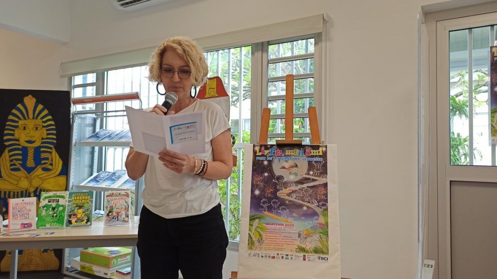 Retour ensuite à la présentation de la sélection, quand le public, enfants et adultes, s’est prêté au jeu de la lecture d’extraits : le défi, pas si simple, était de reconnaître le livre dont le texte était extrait.